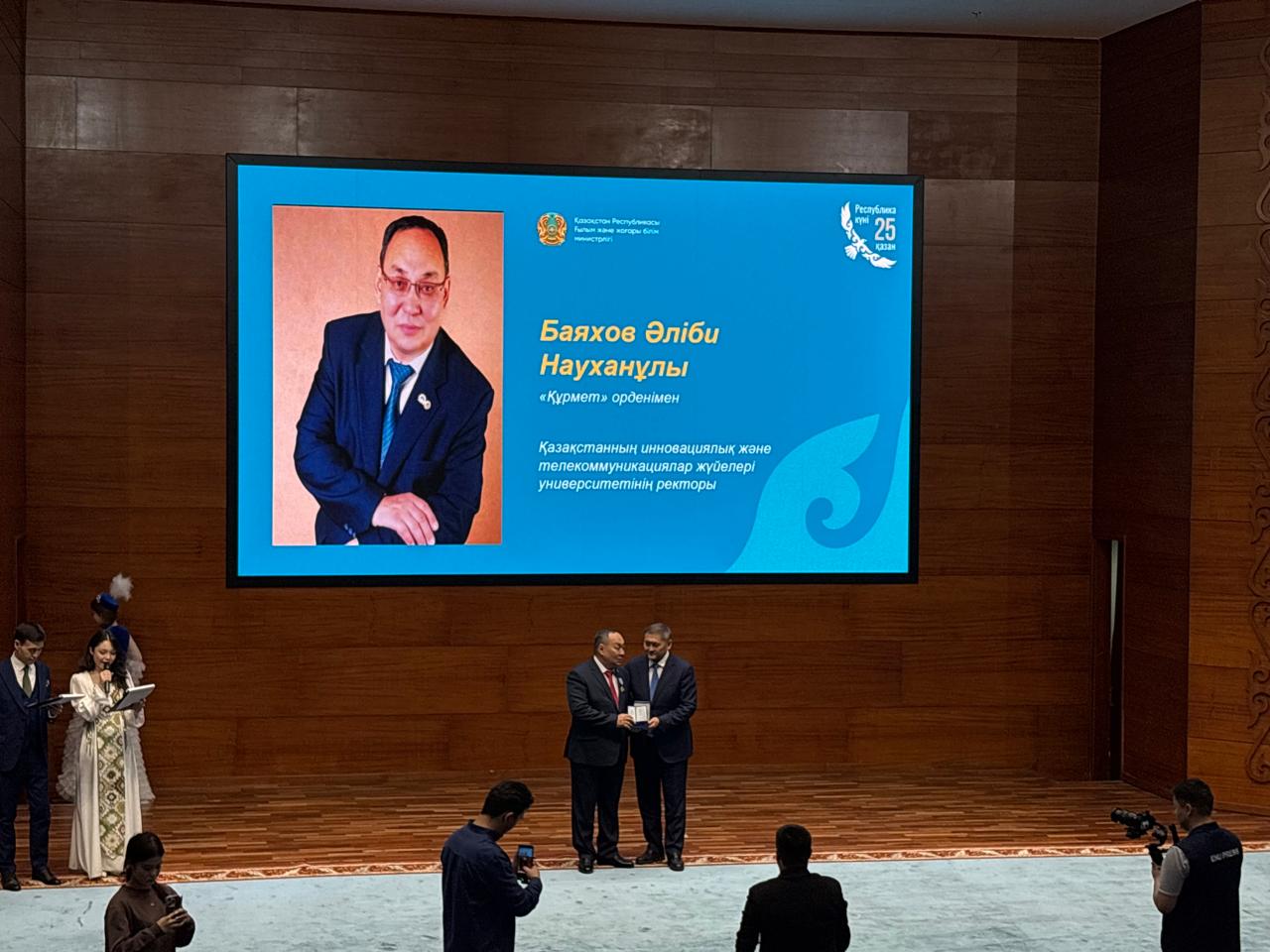 Сізді еліміздің жоғары мемлекеттік наградасы — «Құрмет» орденімен марапатталуыңызбен университет ұжымы атынан шын жүректен құттықтаймыз!