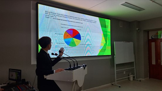 - студенты 1 курса специальности «Безопасность жизнедеятельности и защита окружающей среды» Хамидолла Дархан и студентка 3 курса специальности «Стандартизация и сертификация» Базарбаева Несібелі с докладом «Батыс Қазақстан облысындағы атмосфералық ауаның сапасына экологиялық мониторинг жасау»;