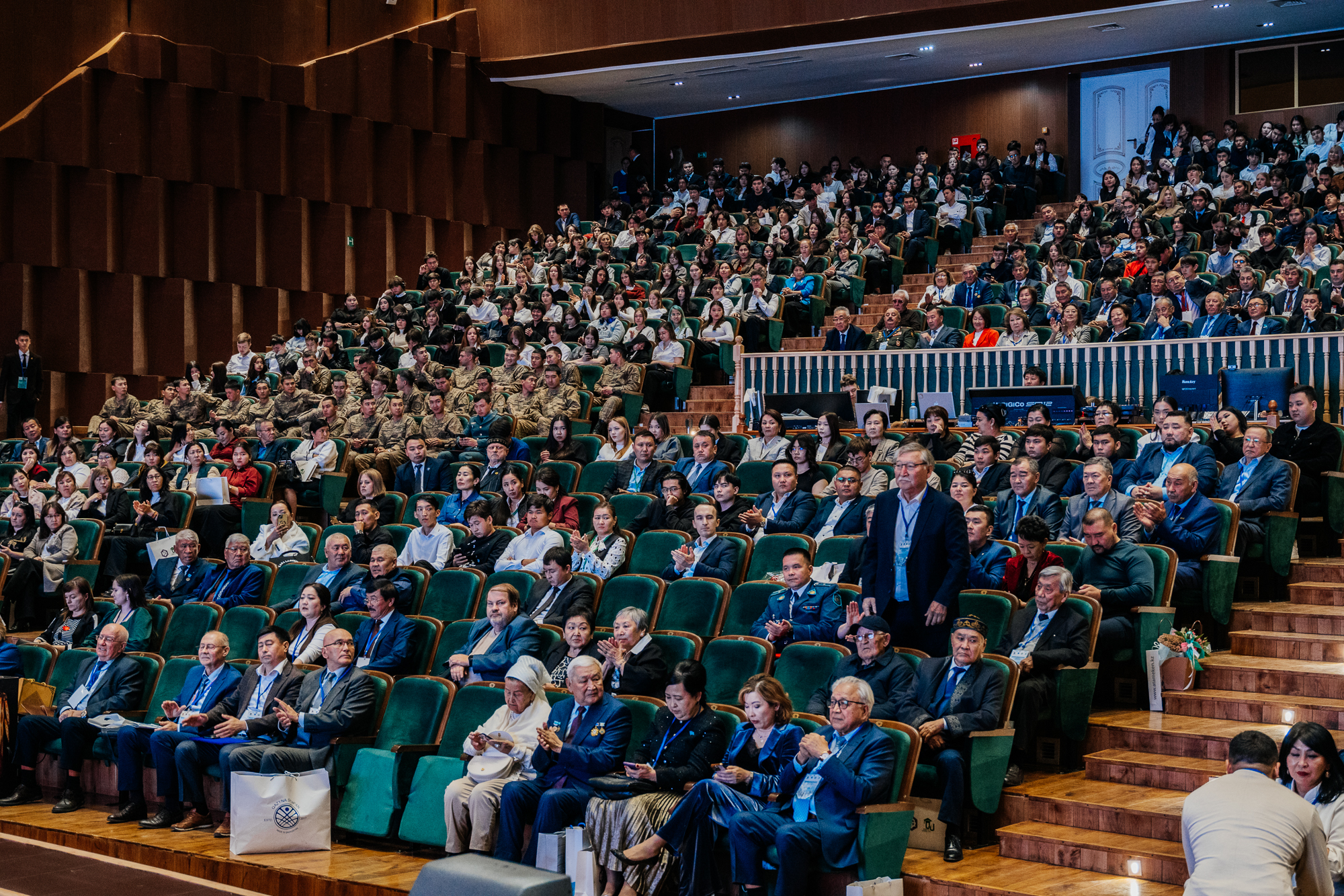 Далее слово для приветствия было предоставлено министру науки и высшего образования Республики Казахстан Саясату Нурбеку и акиму Западно-Казахстанской области Нариману Турегалиевичу Турегалиеву. Однако вместо них с приветственным словом выступил заместитель акима области, который зачитал приветственные адреса от имени министра науки и высшего образования Республики Казахстан и акима Западно-Казахстанской области.