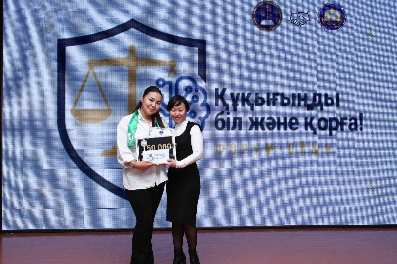 Шарада университетіміздің «Құқықтану» мамандығының 2-ші курс білім алушыларынан құралған «Ақпарат сақшылары» командасы өте жақсы ойын өрнегін көрсетіп, «Үздік құқықтық команда» номинациясын жеңіп алды. Сонымен қатар, 50 000 теңге сыйақыға ие болды.