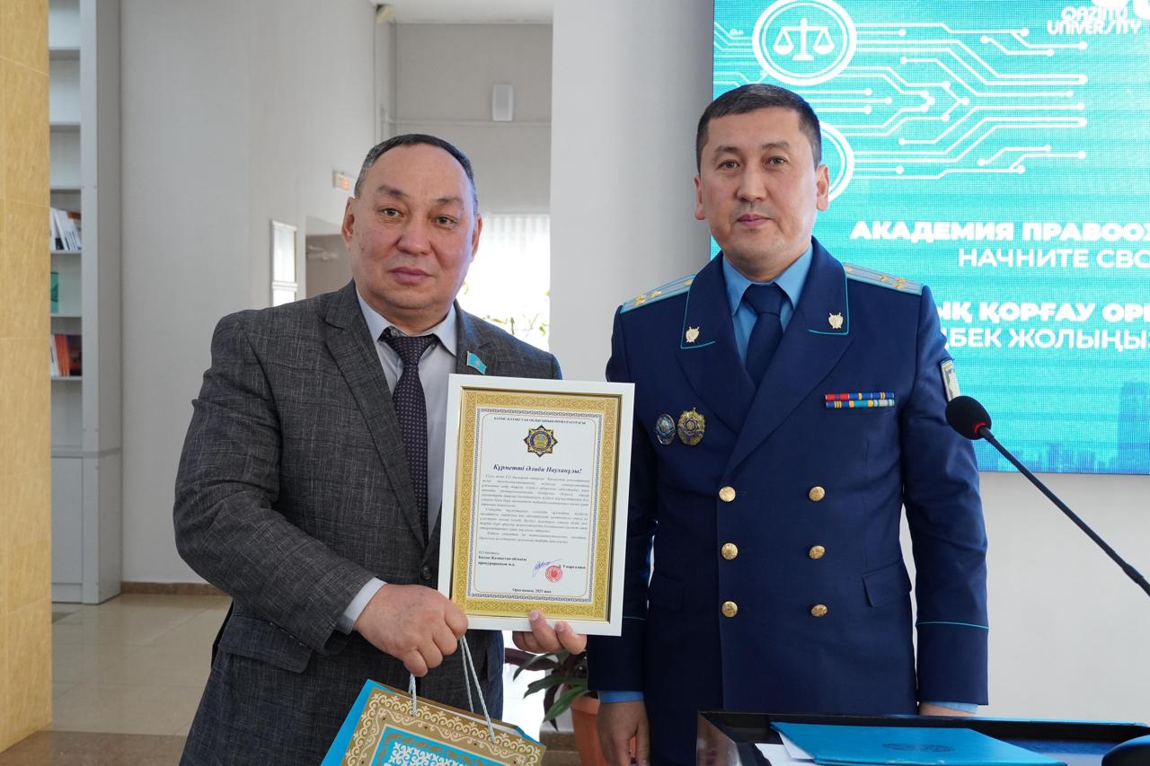 2025 жылдың 20 қыркүйек күні “ Заң және тәртіп” қағидасы аясында Қазақстан Республикасының Бас прокуратурасының бастамасымен Қазақстанның инновациялық және телекоммуникациялық жүйелер университеті базасында “Болашақ прокурор кеңістігі “ ашылды. Бұл – еліміз бойынша “Құқықтану” білім бағдарламасын оқытатын жоғары оқу орындары арасында 11-ші болып ашылған бұрыштама. Шараға Бас прокуратураның кадрлық жұмыс департаментінің басқарма бастығы Е.З.Уәли, БҚО прокурорының м.а. Д.Б.Умаргалиев, БҚО прокурорының орынбасары А.Ә.Сәтбаев, БҚО прокуратурасының аппарат басшысы Е.Рахымжанұлы, БҚО прокурорының аға көмекшісі Ж.Ө.Иманғалиева, БҚО прокуратурасының топ басшысы Д.Е.Нұрсұлтанова, Орал қаласының прокуроры М.Е. Изимов және университетіміздің құрылтайшысы, профессор А.С.Әйтімов, ректор А.Н.Баяхов, ректорат мүшелері, оқытушы- профессорлық құрамы және студенттер қатынасты. “Болашақ прокурор кеңістігі” тақырыбы бойынша ашылған бұрыштамада Қазақстан Республикасының прокуратура қызметінің жүйесі, республикамыздың барлық облыстарының прокуратурасының құрлымы, қызметі, жетістіктері, прокуратура қызметін реттейтін құқықтық актілері, Бас прокуратураның нұсқаулықтары, прокуратура саласында қызмет атқаратын ғалымдардың монографиялары, диссертациялық жұмыстары, қадағалау актілерінің құрлымдық тәртібі бойынша әдістемелік нұсқаулықтар, ғылыми әдебиеттер мен пәндік оқулықтар, республикамызда шығарылатын құқықтық журналдар және де прокурордың қызметтік формасы орналасқан.