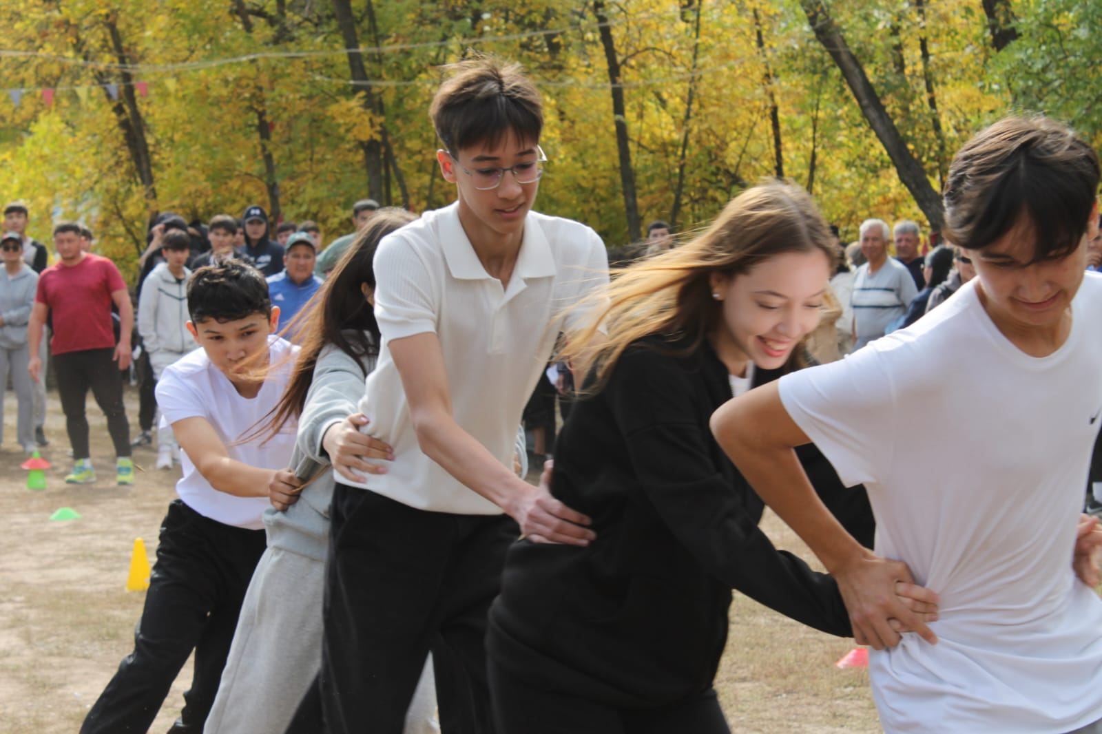 🤾♂️ Шара барысында студенттер арқан тартыс, гір көтеру, көңілді эстафета және түрлі жүгіріс сайыстарына қатысып, өз күш-қуаты мен шыдамдылығын көрсетті.